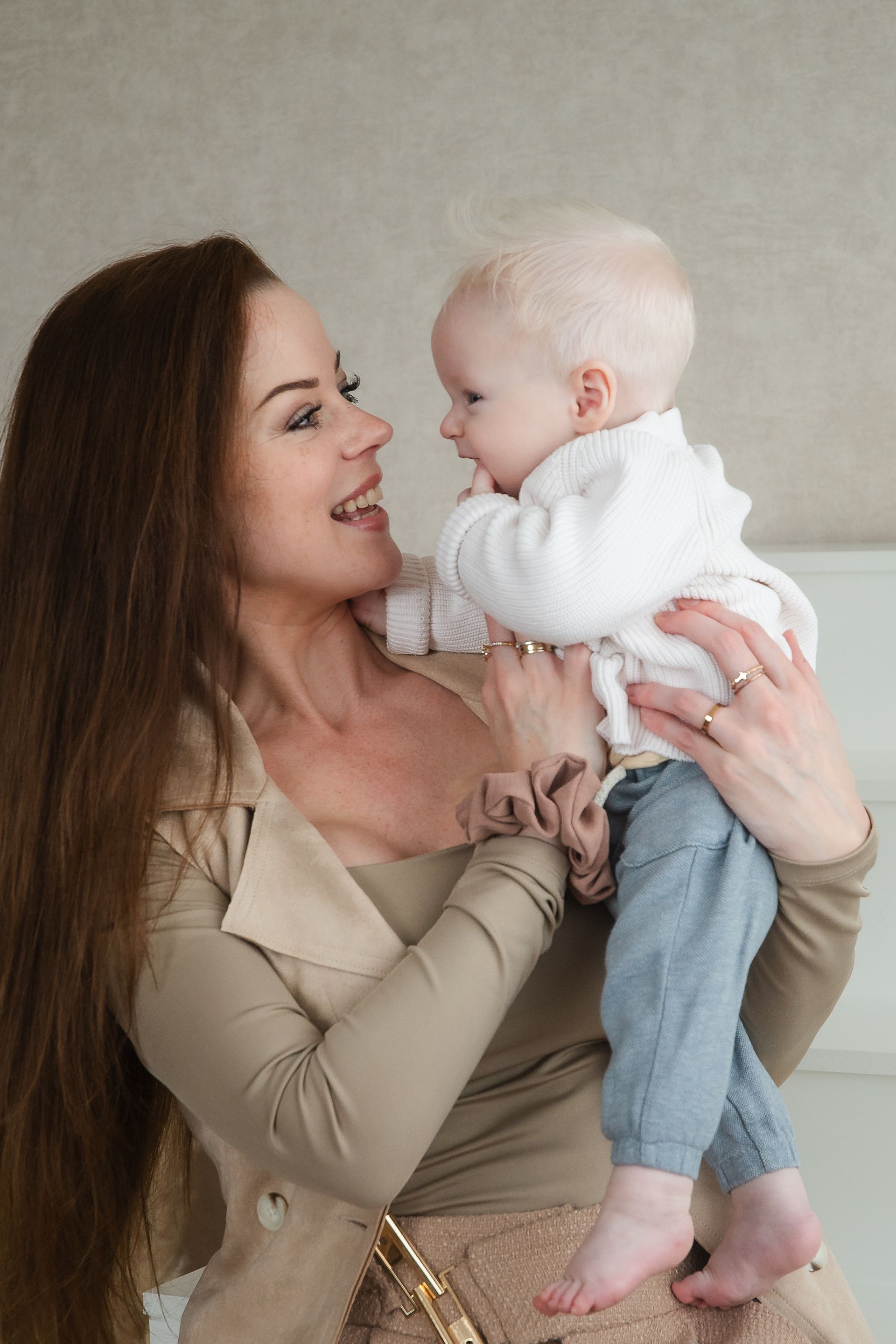 Fotoshoots met je kleintje, waarin knuffels en liefdevolle momenten centraal staan. Echte, gezellige beelden van jullie samen.